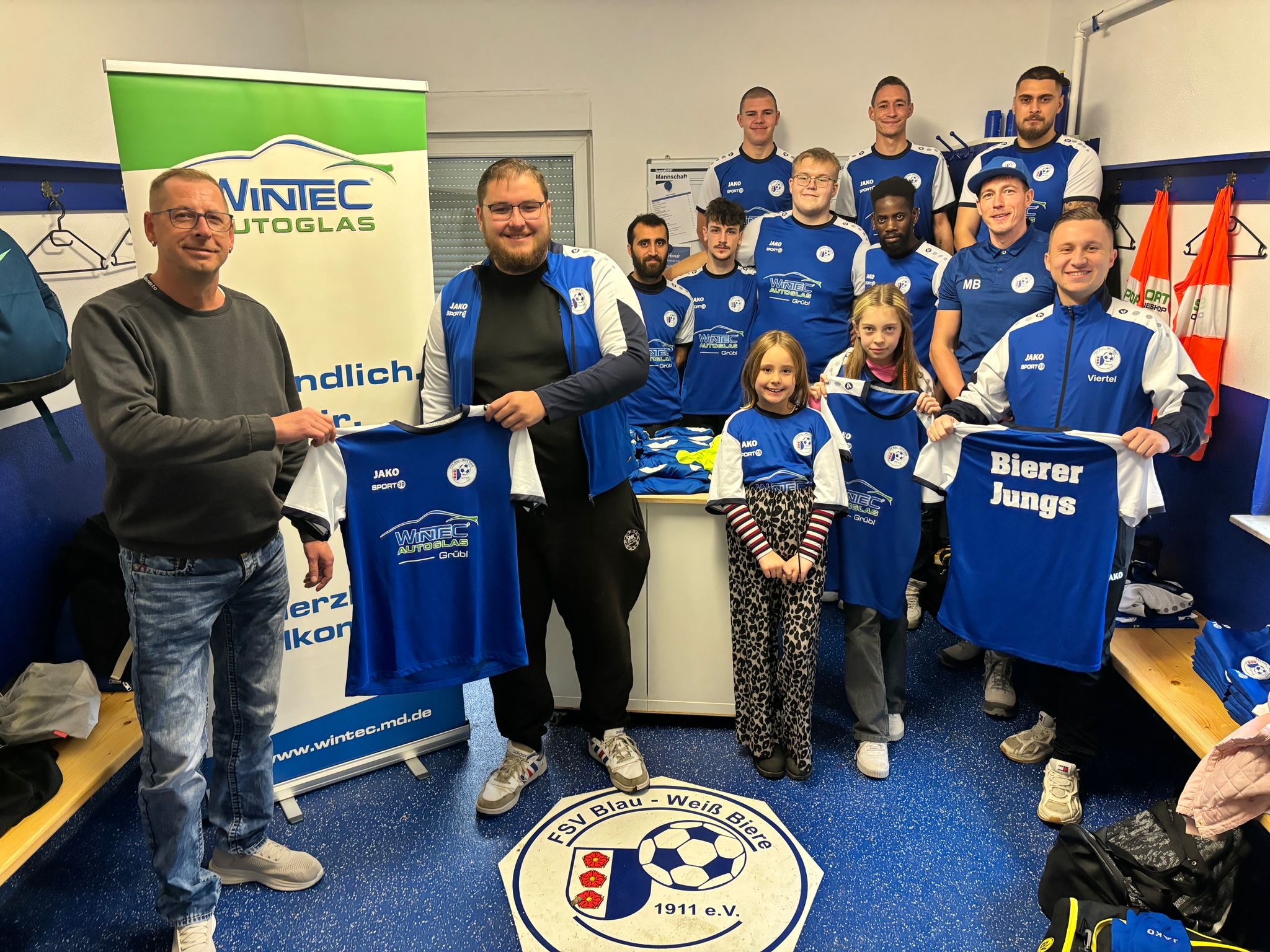 SPONSOREN Saison 2025/26 Mitte November gab es von der WINTEC Autoglas Magdeburg neue Shirts für die Erste. Mit der Aufschrift “BIERER JUNGS” gehts mit stolz und Freude in das Jahr 2026. Vielen Dank an die WINTEC! wintec-md.de Auch in der kommenden Saison können wir uns auf die Unterstützung einiger Sponsoren verlassen. Infos folgen.